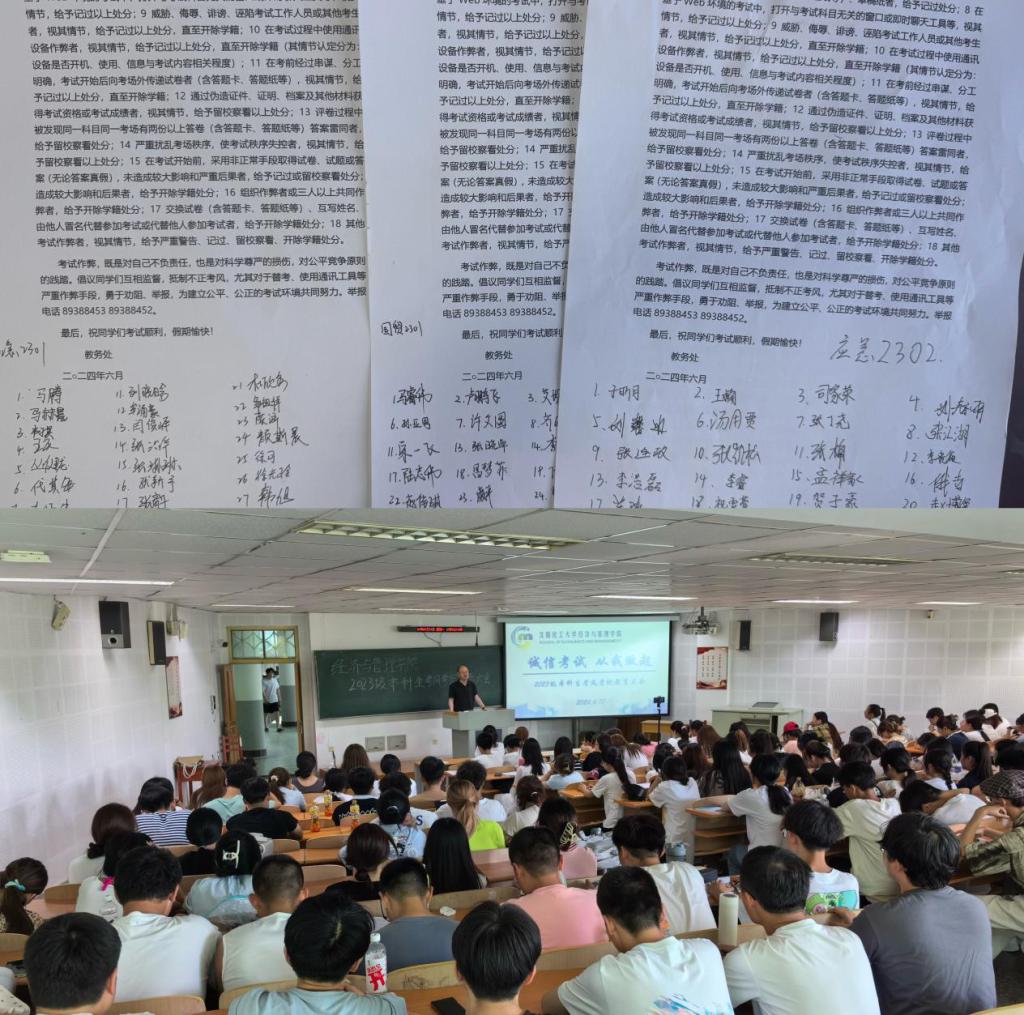 为进一步加强考风考纪教育,深入推进开云官网学风建设工作,倡导“严肃考风考纪、弘扬优良学风、文明诚信应考”,增强同学们的诚信考试意识,保证考试的公正性,端正同学们的学习和考试态度。6月17日下午,“诚信考试,从我做起”2023级本科生考风考纪教育大会在通明楼232、213教室举行,大会由2023级辅导员王怀老师主持,kaiyun开云官方党委书记李丙文主讲,2023级全体学生参会。