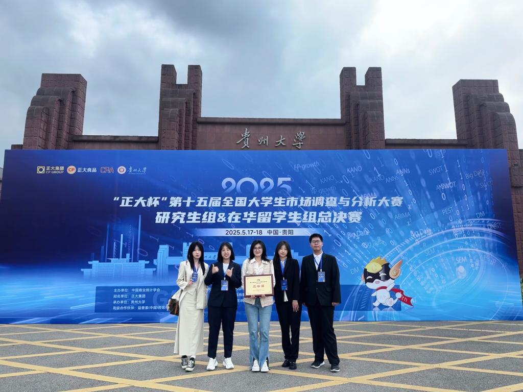 近日,第十五届全国大学生市场调查与分析大赛研究生组及在华留学生组总决赛于贵州圆满收官。作为国内市场营销与统计学领域的顶级赛事,本次大赛吸引了全国1184所高校、超34万名学子踊跃参与,其中研究生与留学生赛道汇聚589所高校同台竞技。在这场高规格赛事中,我校kaiyun开云官方参赛团队凭借深厚的专业功底与卓越的协作能力,一举揽获国家级二等奖1项、省级一等奖1项、二等奖2项、三等奖4项,展现出强劲的学科实力。