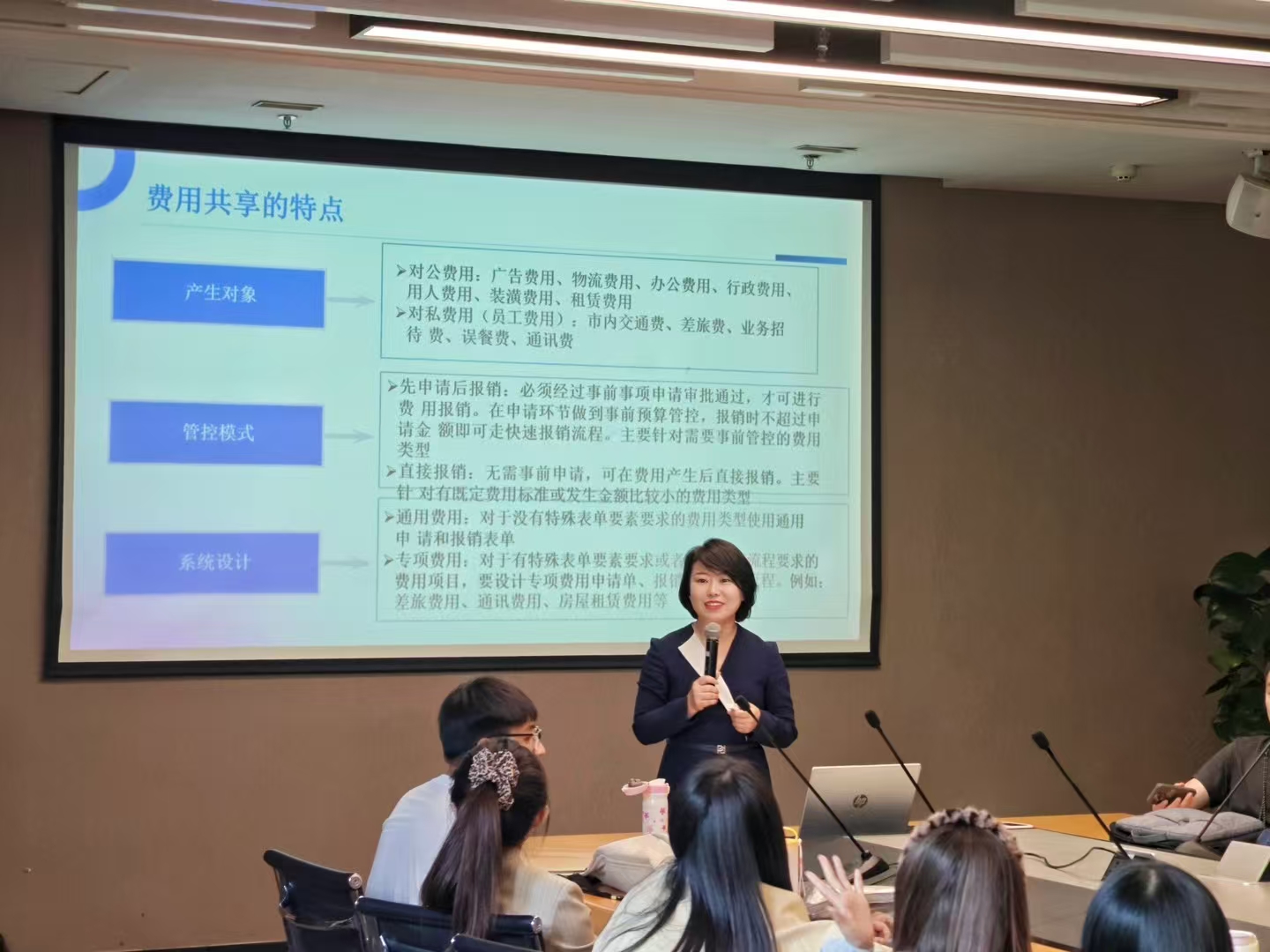 下午,师生们转赴沈阳诚致盛财务管理咨询有限公司。马凤玲总经理结合上午参访的实践观察,聚焦“财务共享中心的核心业务流程”进行了深度剖析。她凭借丰富的行业经验,通过生动的案例解析和翔实的数据展示,将理论知识转化为鲜活的认知,同学们纷纷表示受益匪浅,深化了对课堂内容的理解。