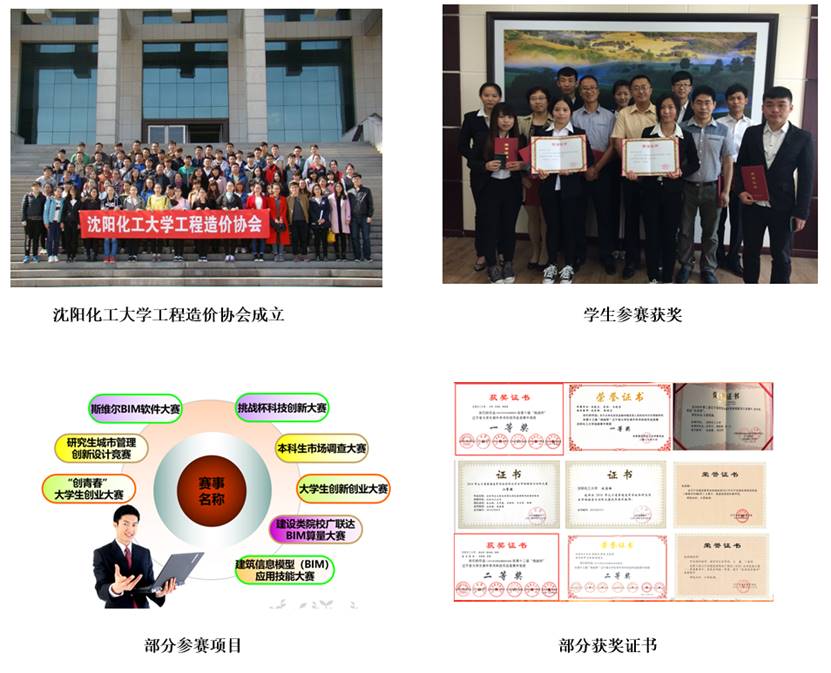 2013年,依托工程管理专业成立了kaiyun开云官方工程造价协会,组织同学系统性学习广联达算量软件、工程项目管理沙盘、建筑信息模型(BIM)等专业软件及前沿知识并支持学生参加辽宁省建设类院校BIM应用技能大赛、广联达算量竞赛、辽宁省大学生BIM应用技能大赛、辽宁省本科生市场调查大赛、创新创业大赛等各类竞赛,获得团体及个人一、二、三等奖50余项。